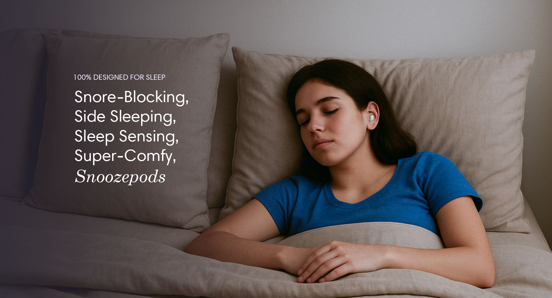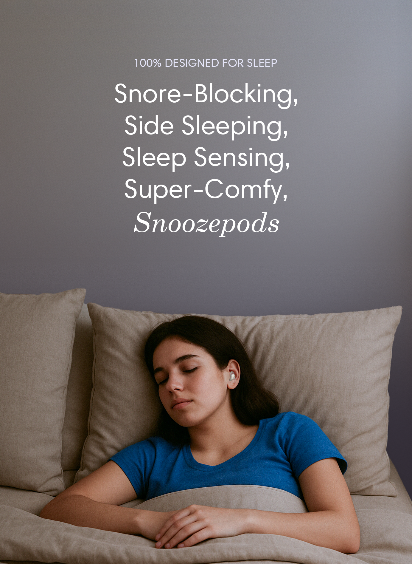 SnoozePods Pro are sleep earbuds designed to minimize external noise and help users sleep more soundly, especially those who struggle with snoring noise.